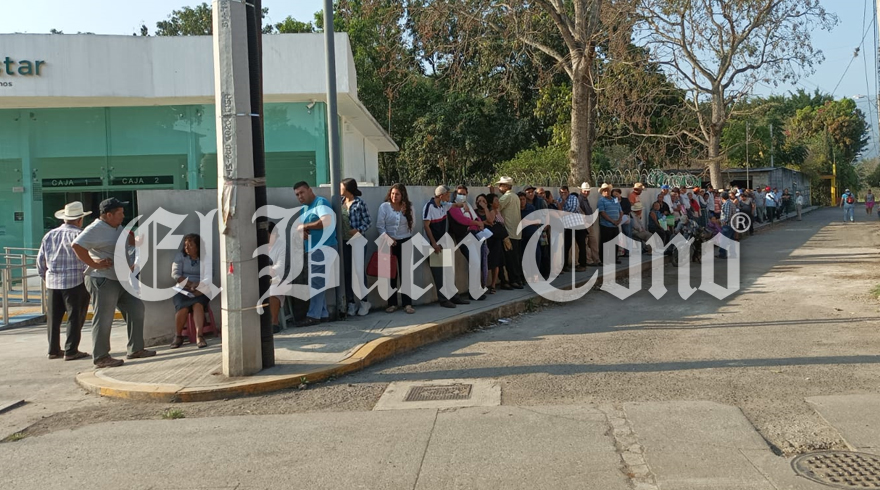 Omealca.- La falta de personal por parte de la Secretaría de Bienestar para dar inicio a los pagos de los apoyos del programa Producción para el Bienestar a productores de caña a ocasionado largas filas entre las personas que pretenden hacer sus retiros desde el día de ayer, pese a que se observa el tumulto de personas la Secretaría de Bienestar no ha ampliado el personal para atenderlos de manera pronta, exponiéndolos a los altos rayos del sol considerando que al cobro también asisten personas de la tercera edad.