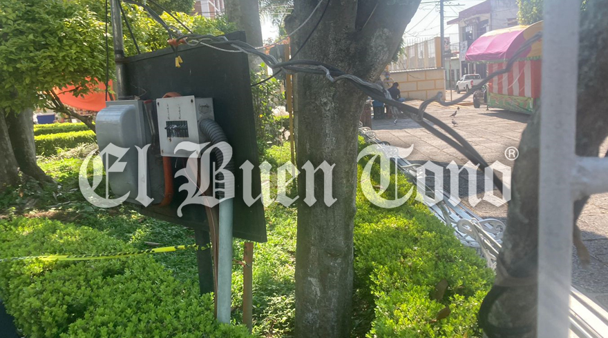 Huatusco.- En el centro de la ciudad específicamente en el parque central se instalaron cables para suministrar energía a negocios, jardineras y adornos que se utilizan en diferentes eventos, sin embargo, familias que acuden a disfrutar de estas áreas verdes acusaron que es un riesgo para la población, ya que los cables son de alta tensión y se encuentran al alcance de los niños y puedan provocar un riesgo.