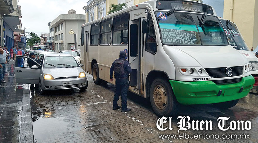 Los hechos ocurrieron en la calle 5, entre las avenidas 1 y 3, cuando un sujeto identificado como Iván Hernández Espejo, de 28 años, descendía de su vehículo, sin percatarse de la presencia del autobús, por lo que fue impactado, quedando lastimado de un dedo con