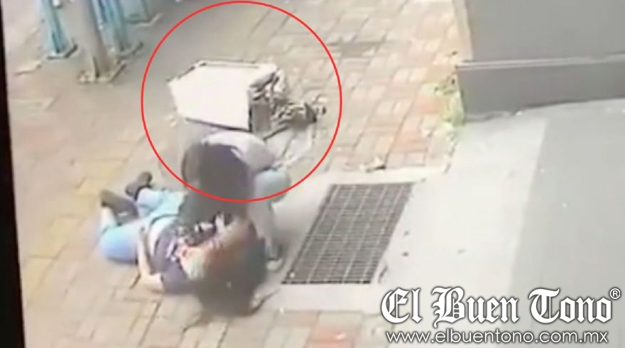 Internacional.- Una mujer caminaba plácidamente por la calle, sin imaginar que de un momento a otro le iba a caer un objeto pesado en la cabeza.