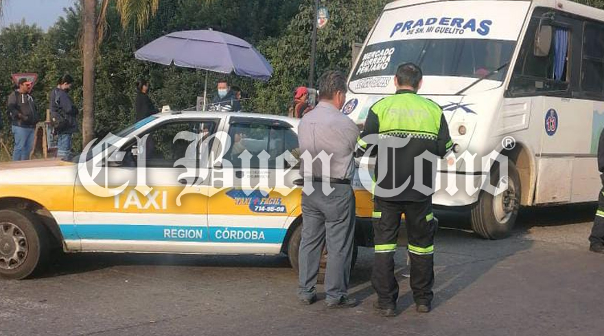 Un autobús de pasajeros golpeó por detrás a un taxi, frente a un conocido centro comercial; el tráfico se vio afectado por varios minutos.