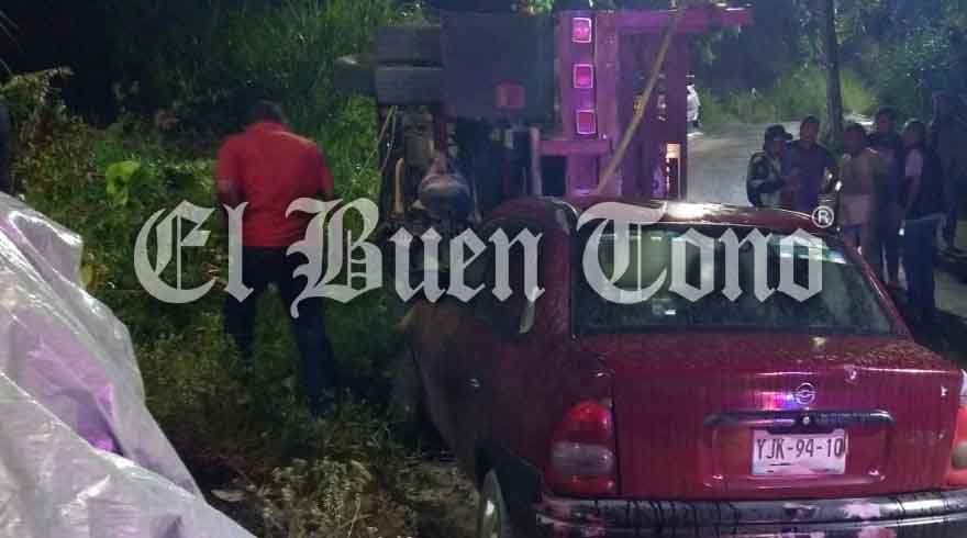 Córdoba.- Daños materiales y la movilización de los servicios de emergencia, fue lo que dejó la volcadura de una camioneta Ford, la cual iba cargada con cemento. Los hechos ocurrieron en la prolongación de la calle 9 del Infonavit Santa Margarita, debido al peso de la camioneta, la cual iba cargada con 2 toneladas de cemento, el conductor perdió el control en la pendiente, por lo que se precipitó en reversa impactando a un vehículo Chevy para terminar volcada. Este accidente por fortuna no dejó personas lesionadas.