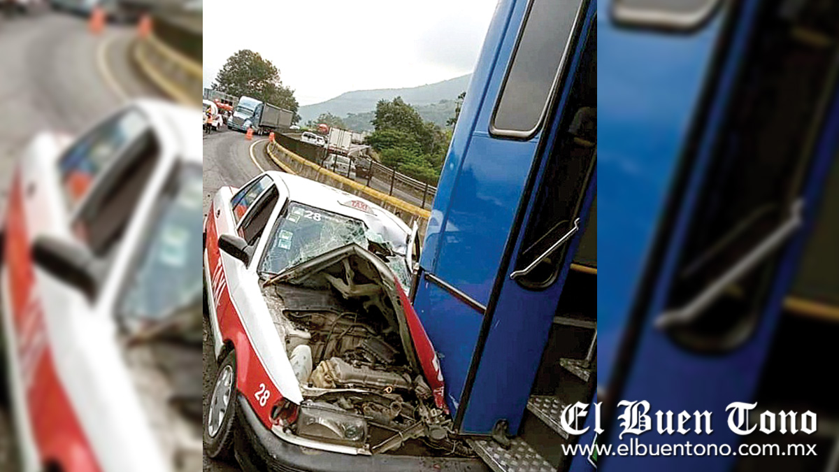 De acuerdo al peritaje, la falta de precaución y al no guardar la distancia prudente ocasionó que el taxi se incrustase en la pesada unidad al tomar una de las curvas mayormente pronunciadas de dicho tramo