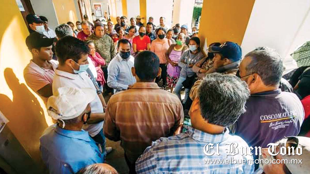 Coscomatepec.- La mañana de este viernes habitantes de la comunidad de Xalatlaco tomaron el Palacio Municipal a manera de presión para que les brinden agua, llevan cuatro días sin el vital líquido.