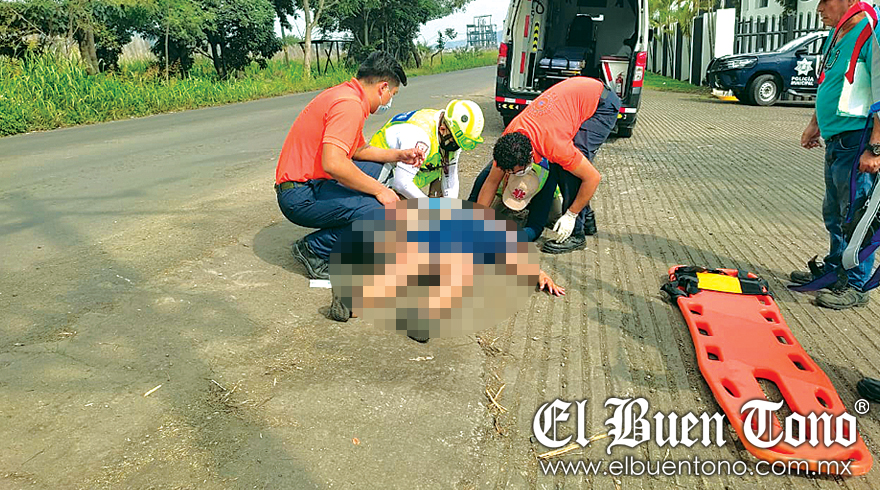 A la altura de una empresa, en donde se encuentra un tope, perdió el control y derrapó, resultando con lesiones en diferentes partes del cuerpo.