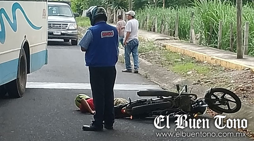 Córdoba, Ver.- Un motociclista resultó lesionado al derrapar y quedar aplastado por su motocicleta, este lunes por la tarde en la carretera La Luz Palotal. El lesionado fue atendido por paramédicos de la Cruz Roja que llegaron al ser alertados. Elementos de la policía municipal llegaron para abanderar la circulación a fin de evitar algún otro percance mayor.