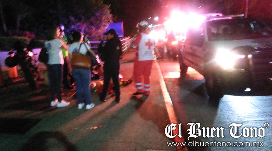 El accidente se registró a las 19:45 horas, cuando esta persona viajaba en su motocicleta marca Dinamo de color gris con negro.