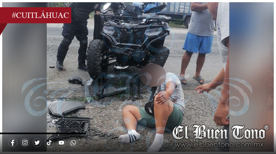 Cuitláhuac, Ver.- Un joven que viajaba en su cuatrimoto, resultó lesionado al derrapar este lunes por la tarde en la carretera federal Córdoba-Veracruz, a la altura del kilómetro 27.