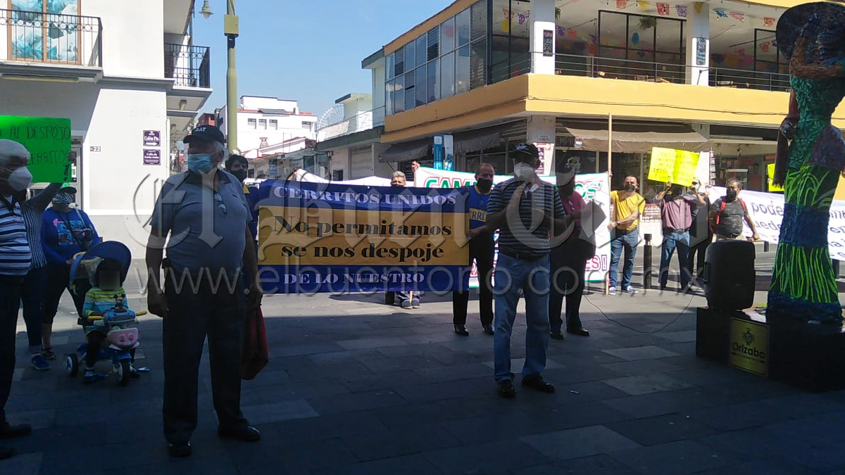 Orizaba. – En estos momentos llegan al palacio municipal habitantes de Cerritos, parados frente a palacio con las puertas cerradas del palacio municipal están informando a la población su inconformidad, es decir, que se haya cambiado el uso de suelo por parte del cabildo orizabeño.