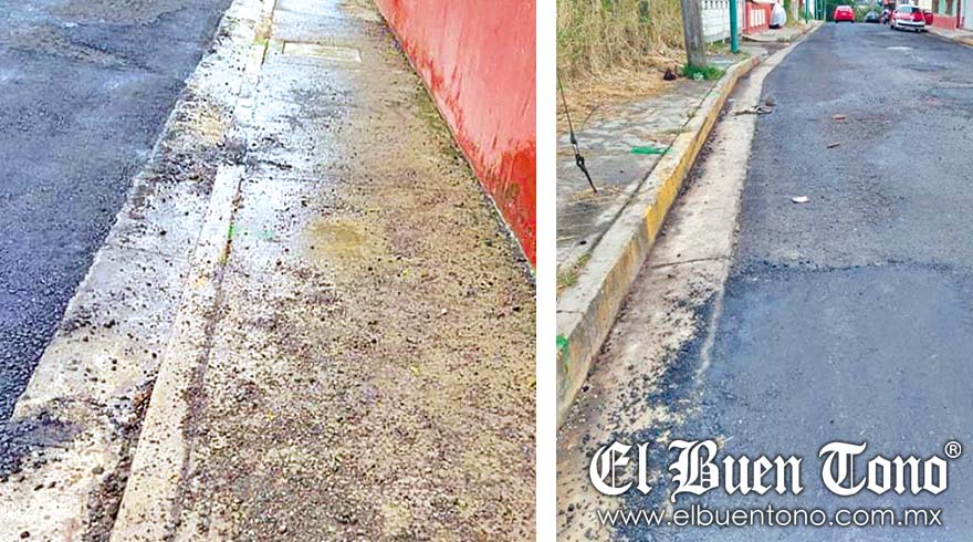 Huatusco.- En la calle 8, de la colonia Reserva Territorial, las autoridades municipales rehabilitaron la cinta asfáltica, pero la mala calidad de los materiales que utilizaron, hizo que con las lluvias empezara a desprenderse, denunciaron vecinos.