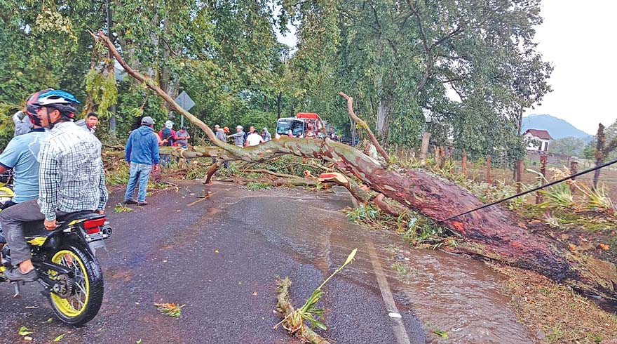 Región- La intensa lluvia con truenos, relámpagos, rachas de viento y granizo que se registraron ayer en zona de Huatusco, provocaron la caída de árboles, desprendimiento de láminas de varias viviendas, interrupción del flujo eléctrico y de la circulación en algunos tramos carreteros.