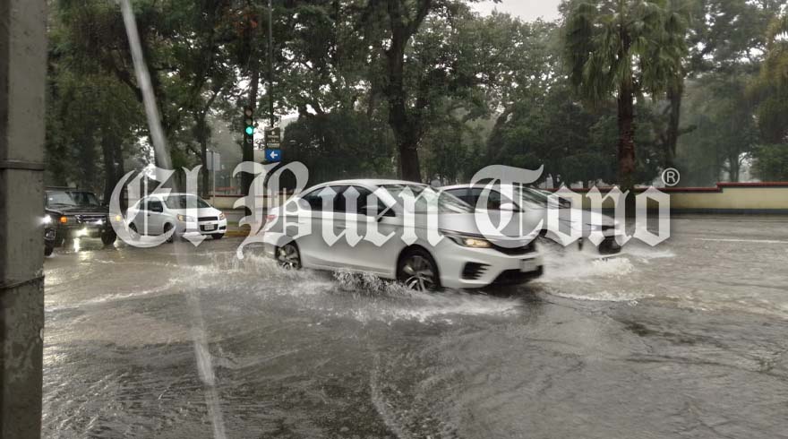 Ciudadanos reportaron que las corrientes de agua superaron los camellones y banquetas, lo que generó caos vial y puso en riesgo la seguridad de conductores y peatones.