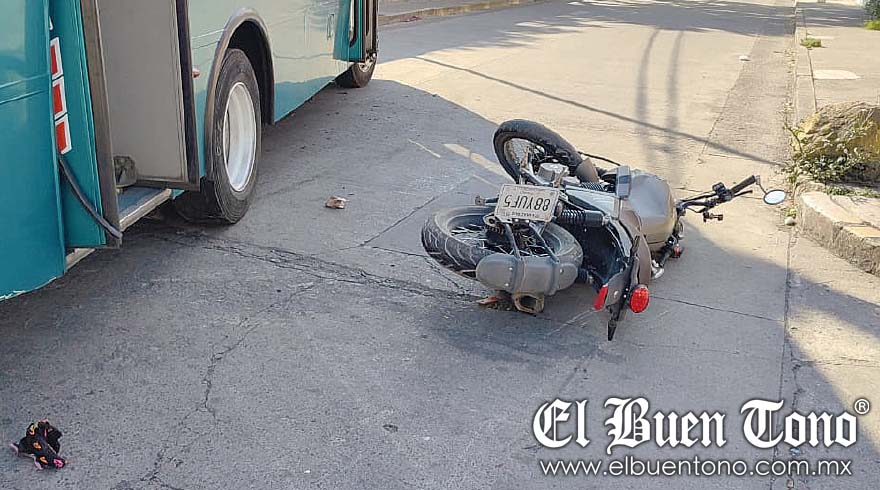 El camión de pasajeros número económico 20 y la motocicleta con placas de circulación 88YUF5 fueron llevados al corralón para el deslinde de las responsabilidades.