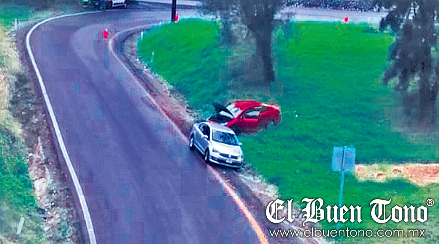El percance ocurrió a ayer a las 09:30 horas, cuando un automóvil Volkswagen color gris, modelo reciente y placas del estado de Veracruz, se desplazaba a toda velocidad sobre el carril de descenso de la carretera 150-D, al tomar el distribuidor vial a la altura del kilómetro 278, el vehículo chocó de costado contra otro auto Nissan color rojo que, tras el encontronazo, se salió de la superficie de rodamiento y terminó varado a un costado, al igual que la otra unidad