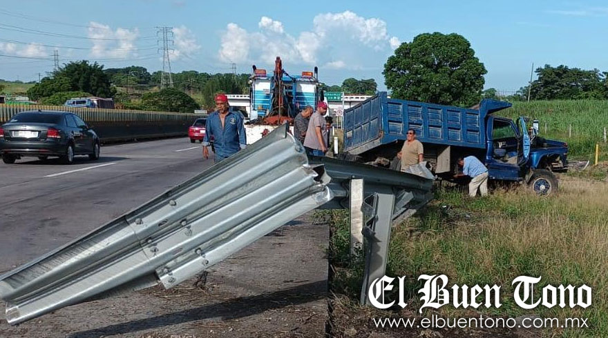 Córdoba. – Un camión de volteo terminó derribando unas barras metálicas, al ser impactado por un tractocamión que lo sacó de la autopista Córdoba-Veracruz, en el tramo del Trebol del Diamante al de Amatlán.