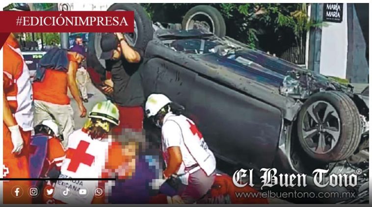 Córdoba.- La mañana de ayer se registró un percance vial que dejó como saldo dos personas lesionadas, luego de la volcadura de un automóvil particular en el cruce de la avenida 1 y calle 24.
