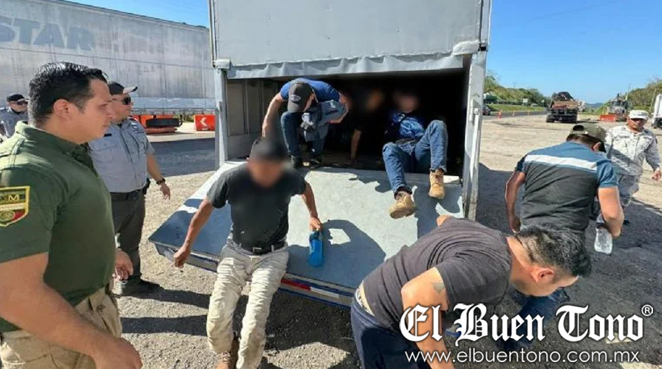 Los conductores de las camionetas de carga y un copiloto fueron puestos a disposición de las autoridades correspondientes, junto con las unidades, para el deslinde de responsabilidades en este caso de tráfico de personas.