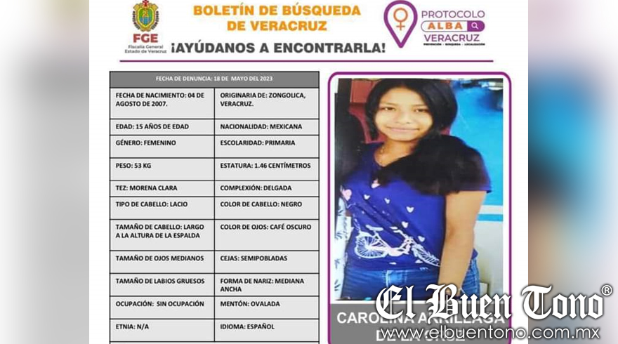 Córdoba, Ver.- Carolina Arrillaga de la Cruz, la menor de 15 años de edad, vecina de Fortín, que fue reportada como desaparecida, ya fue localizada por las autoridades policiacas, y puesta a disposición de la Fiscalía Especializada en investigación de Delitos cometidos en contra de la familia, niñas, niños y trata de personas.