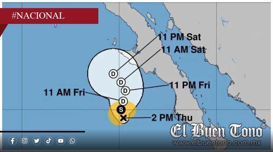 El SMN prevé lluvias torrenciales de 150 a 250 mm en Baja California Sur; intensas, de 75 a 150 mm, en el sur de Baja California y en el oeste y sur de Sonora; muy fuertes de 50 a 75 mm en Durango y en el norte y costa de Sinaloa; y fuertes, de 25 a 50 mm, en Chihuahua.