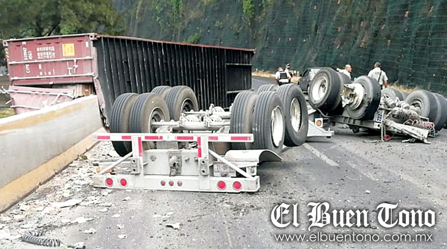 El accidente ocurrió a las 15:00 horas, cuando un Freightliner de color gris, con placas 69-AN-8J del SPF, propiedad de Transportes AFN, circulaba en dirección a Veracruz acoplado a un doble remolque cargado con abarrotes.