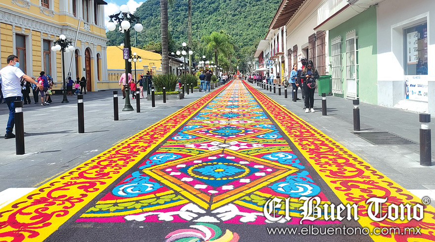 Orizaba.- Un total de 800 metros de arte adornaron las calles del centro de la ciudad de Orizaba en honor a San Miguel Arcángel, trabajo realizado por 64 artesanos provenientes de Huamantla, estado de Tlaxcala, que desde hace 14 años han arribado a Orizaba para embellecer con tapetes coloridos las