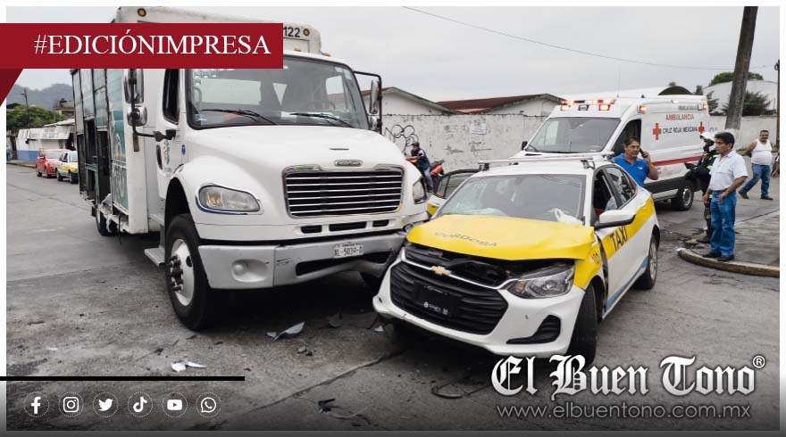 El taxi, identificado con el número 101, fue golpeado cuando el conductor del camión cervecero salió sin precaución de la calle lateral y, al intentar cruzar la avenida, impactó el lado derecho del vehículo, proyectándolo varios metros.