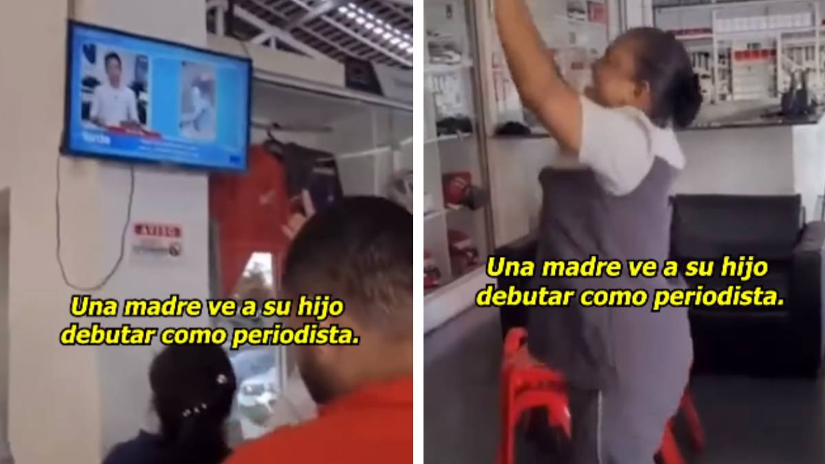 La madre rompió en llanto al ver a su hijo en televisión. Con lágrimas en los ojos y una sonrisa radiante en el rostro, no pudo contener su orgullo y felicidad. Esta emotiva escena fue capturada por una persona presente en el lugar, quien grabó el enternecedor momento con su teléfono celular.