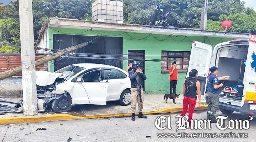 Mariano Escobedo.- El conductor de un vehículo particular, quien se encontraba bajo los efectos del alcohol, perdió el control de su automóvil y terminó chocando contra dos postes, uno de madera que derribó, y otro de concreto.