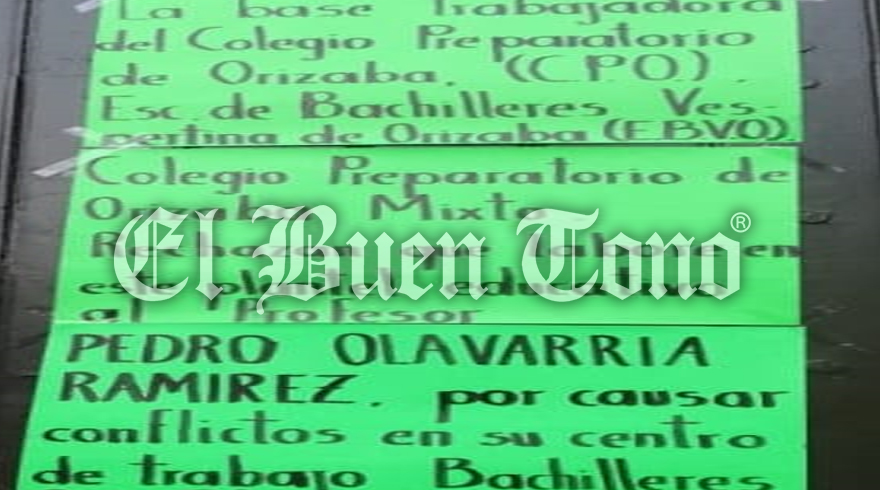 Orizaba.- Maestros del Colegio Preparatorio Orizaba (CPO) y de Bachilleres Vespertina de Orizaba (EBVO) se oponen a la llegada del docente Pedro Olavarría Ramírez, quien es señalado de ser una persona conflictiva, motivo por el cual fue salió del Colegio de Bachilleres en el municipio de Río Blanco.