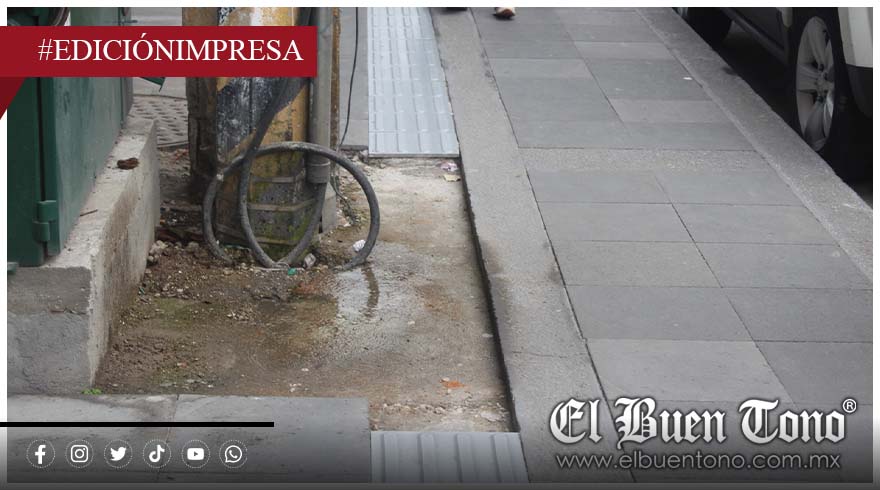 Córdoba.- Las líneas podotáctiles instaladas por el gobierno de Juan Martínez Flores en el primer cuadro de la ciudad no solo están rotas y cuarteadas: en varios puntos desembocan directamente en postes con cables pelados de alta tensión, estructuras metálicas y muros, lo que representa un riesgo grave y permanente para las personas con discapacidad visual que dependen de estas guías para desplazarse.