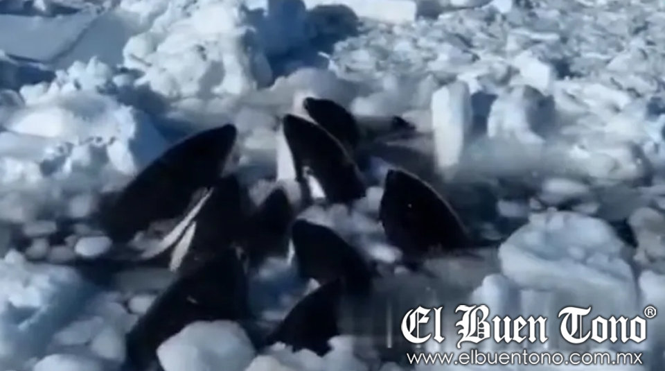 Japón.- Una alarmante situación ha surgido frente a la costa de Hokkaido, en el norte de Japón, donde una manada de más de 10 orcas, también conocidas como ballenas asesinas, quedaron atrapadas en el hielo a la deriva.