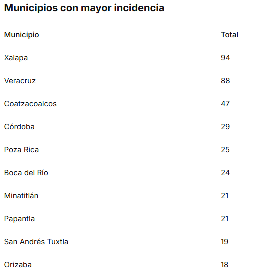 El rubro de homicidios es el que más enciende las alarmas en la ciudadanía. En enero, Córdoba reportó cero víctimas; en febrero, la cifra se disparó a cuatro, empatando con Papantla como el segundo municipio con más homicidios dolosos, solo detrás de Coatzacoalcos (seis). Por modalidad revela una escalada preocupante: con arma de fuego 3 casos (75%) y arma blanca 1 caso