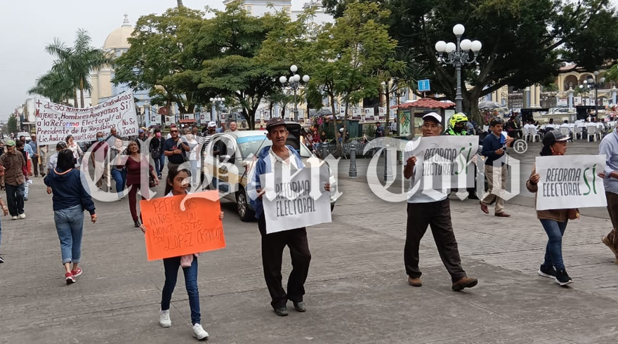 Córdoba, Ver.- Un minúsculo grupo de personas de la tercera edad, realizó una marcha por las calles de Córdoba a favor de la Reforma Electoral del presidente Andrés Manuel López Obrador.