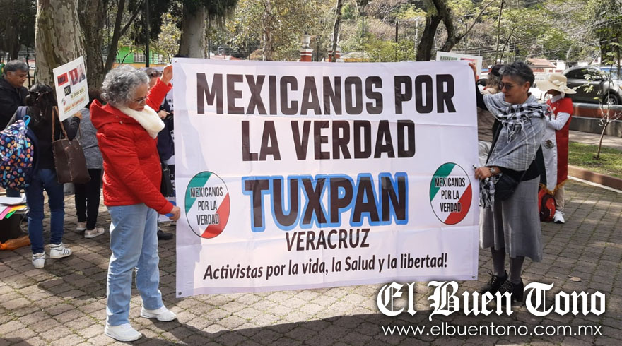 En medio de gritos de ¡libertad! y ¡falsa pandemia!, cerca de 30 ciudadanos que forman parte de la agrupación “Mexicanos por la Verdad” se reunieron en la alameda central “Francisco Gabilondo Soler”, para exigir un alto al cubrebocas obligatorio, al certificado de vacunación, a la vacunación infantil y la obligatoriedad de la inmunización.