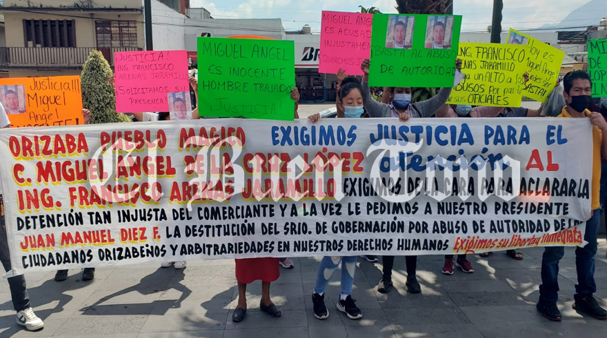 Orizaba.- La tarde desde viernes un grupo de personas marchó para exigir la liberación de Miguel Ángel “N”, comerciante al que se le acusa de robo agravado de 350 mil pesos y que fue detenido por la Policía Municipal sin presentar algún cargo en su contra.