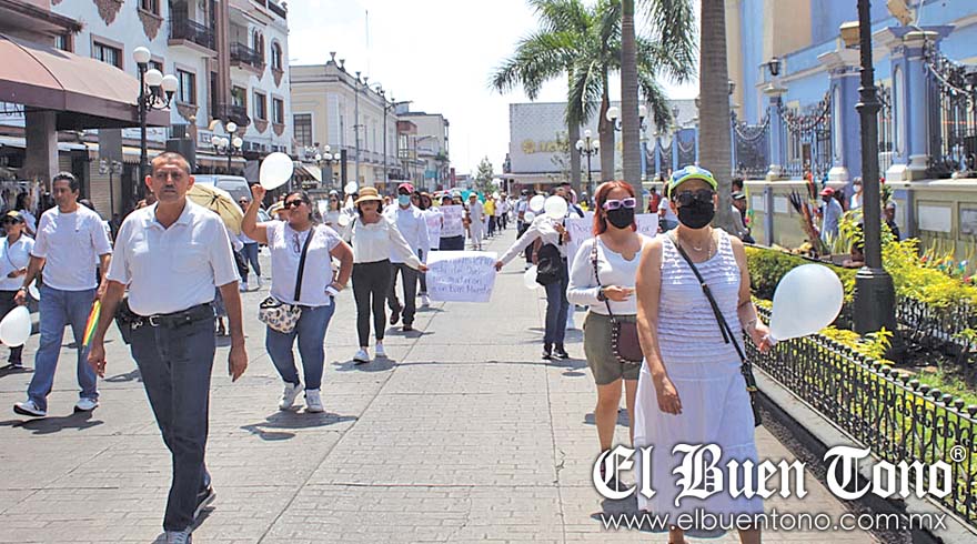 Córdoba. – En una manifestación pacífica, integrantes de sindicatos magisteriales marcharon por las principales calles de la ciudad exigiendo justicia por el asesinato del maestro Antonio González Rodríguez, quien fuera muerto a balazos por agentes ministeriales la noche del viernes, junto con la estudiante Lucero Porras Hernández, en la localidad de Tequecholapa, en la carretera Naranjal-Coetzala.