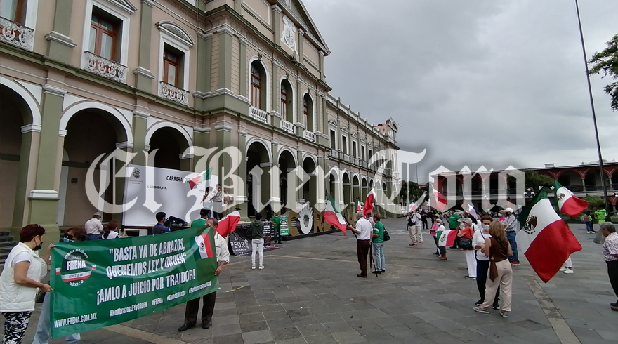 CÓRDOBA.- Luego de varios meses sin actividad, la mañana del domingo el Frente Nacional Anti AMLO (FRENAAA) se manifestó en el parque 21 de Mayo y después caminó por la calle 3 para regresar a la avenida 1 y así desembocar en el zócalo cordobés, durante su recorrido externaron su completo rechazo a la política de seguridad del gobierno federal de “Abrazos, no balazos”.