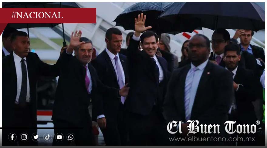 Estado de México.- En medio de una intensa lluvia, el secretario de Estado de los Estados Unidos, Marco Rubio, arribó esta tarde al Aeropuerto Internacional Felipe Ángeles (AIFA), donde fue recibido por el canciller Juan Ramón de la Fuente. Rubio descendió de su aeronave alrededor de las 18:27 horas y, en un gesto cordial, saludó a los periodistas presentes.