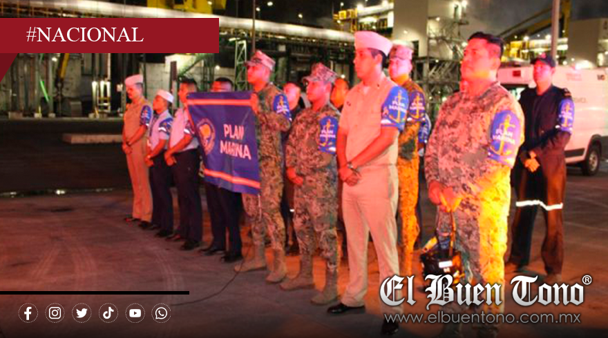 Tabasco.- La Secretaría de Marina activó el Plan Marina en su fase de auxilio y desplegó 100 elementos navales para apoyar en la sofocación del incendio registrado en la Refinería Olmeca Dos Bocas, ubicada en el municipio de Paraíso.