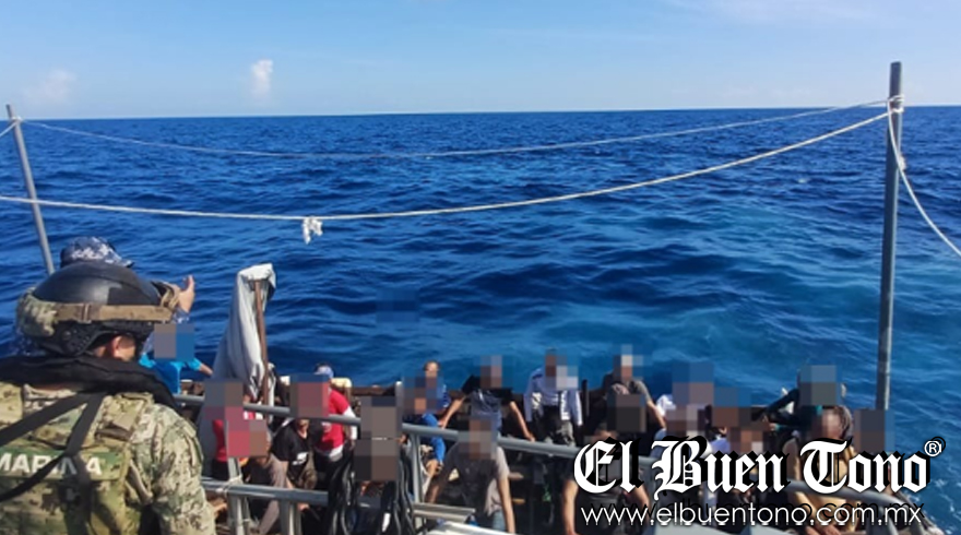 Quintana Roo.- La Secretaría de Marina-Armada de México (Semar) informó este jueves que rescató a 31 personas extranjeras que se encontraban a bordo de una embarcación que cruzaba aguas nacionales del estado de Quintana Roo.