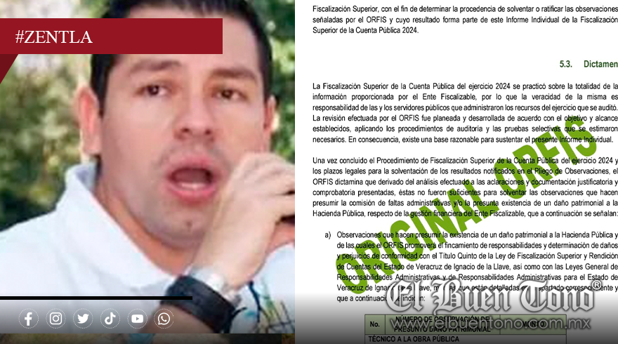 Zentla, Ver.- El Órgano de Fiscalización Superior del Estado (ORFIS) detectó un desfalco por 2 millones 527 mil 883 pesos en la cuenta pública 2024 del Ayuntamiento de Zentla, en el rubro de obra pública, revelando un desvío que afecta directamente a la comunidad.