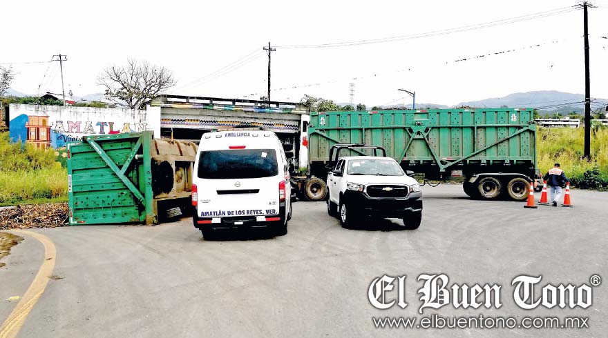 El tractocamión se dirigía hacia Ama-tlán, proveniente de la autopista Córdoba-Veracruz, pero al realizar maniobras para cruzar el puente, el peso de la carga le ganó en una curva.