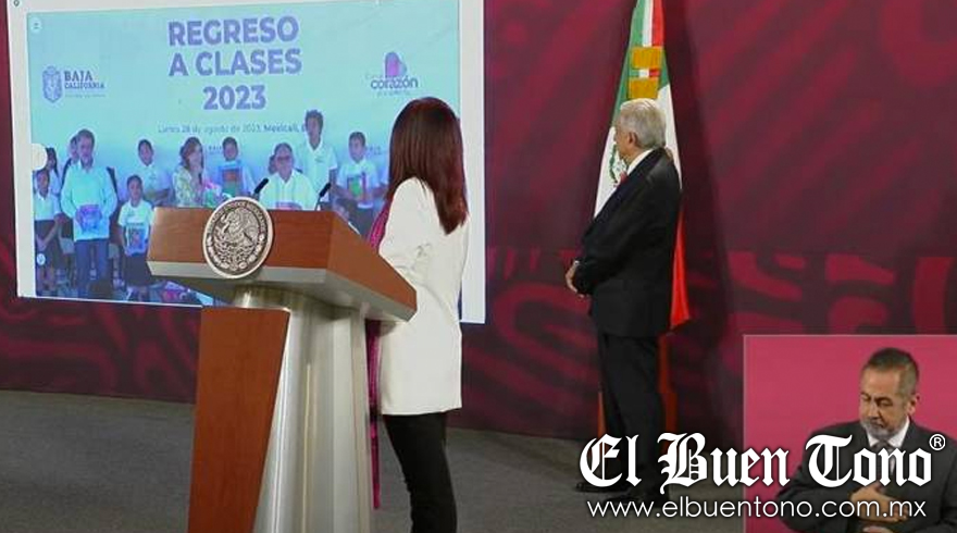 La funcionaria expresó: “En relación con los nuevos Libros de Texto Gratuitos, quisiera comentarles que se han repartido casi 95.6 millones de libros en las escuelas. Y ustedes vieron que hay 26 estados que los están repartiendo de la manera en que lo observamos en Baja California, Quintana Roo, Tamaulipas, Durango, Guerrero, Michoacán, Tlaxcala, Puebla…”, desde Palacio Nacional.