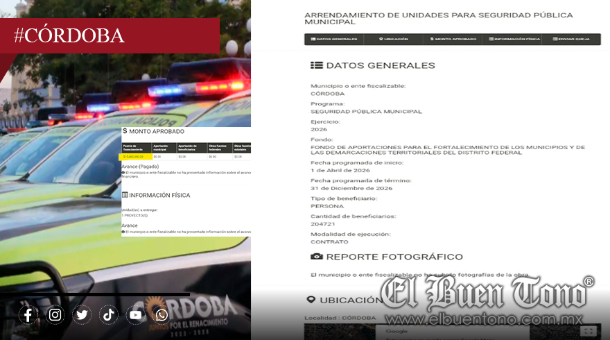 Córdoba, Ver.- El 10 de abril marca los primeros 100 días de la administración de Manuel Alonso Cerezo al frente del Ayuntamiento de Córdoba. Los datos de incidencia delictiva de enero y febrero, muestran una ciudad donde la violencia intrafamiliar y los asaltos a comercios con arma crecen sin que el presupuesto municipal responda con estrategia. El gasto aprobado para seguridad pública asciende a más de 120 millones de pesos, pero la mayor parte se destina a sueldos compactos (79.4 millones) y al arrendamiento de unidades (15.6 millones), este último aún sin licitar.