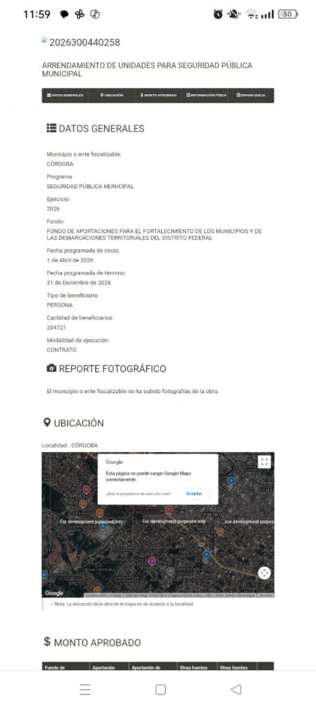 La clave 2026300440258 del FORTAMUNDF autoriza “arrendamiento de unidades para seguridad pública municipal” por 15.6 millones de pesos. A 100 días de gestión, la licitación no ha sido publicada en el portal de transparencia municipal. Este monto equivale a casi el doble de lo destinado a videovigilancia (10 millones) y supera con creces el gasto en combustible (6.6 millones) y uniformes (5.4 millones). Arrendar, en lugar de comprar, es una práctica que evita la incorporación de activos al patrimonio municipal y suele traducirse en contratos plurianuales con empresas específicas. La opacidad en este proceso convierte la seguridad en un negocio, no en una política pública.