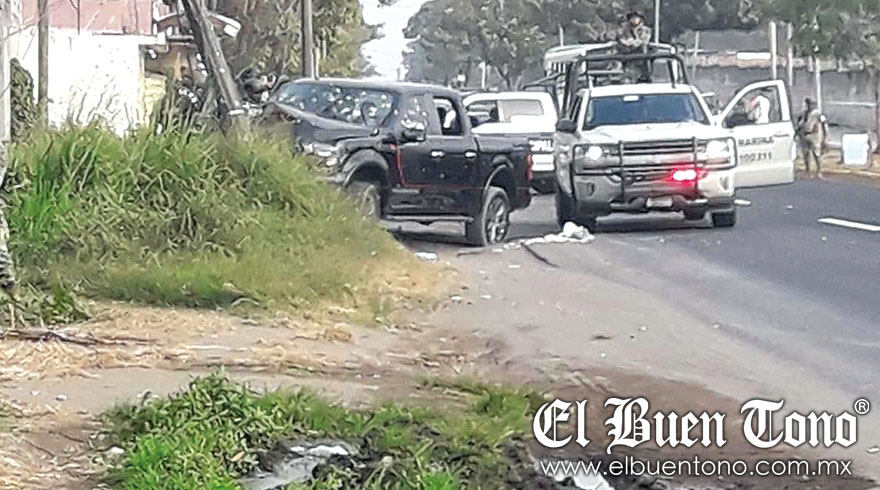 En la balacera entre hombres armados que viajaban en dos camionetas, el taxi número 418 recibió también impactos de bala, un hombre falleció mientras el conductor, herido, fue trasladado a un hospital.
