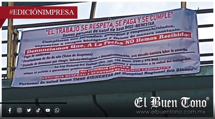 Río Blanco.- Ante el persistente incumplimiento de sus pagos y condiciones laborales, personal médico y de enfermería del programa IMSS-Bienestar anunció una manifestación y el bloqueo de una autopista para hoy.
