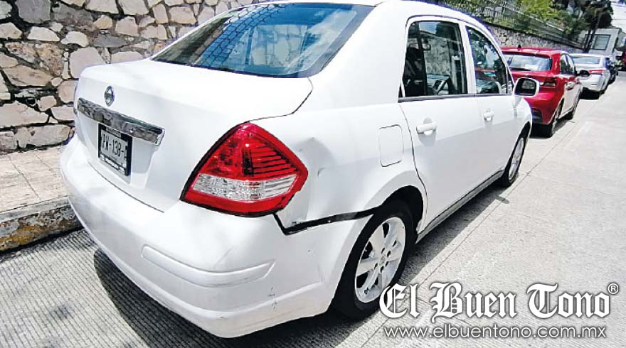 La mujer que conducía el automóvil blanco, no hizo alto al llegar a la esquina, se cruzó sin precaución y provocó que el motociclista se estrellara contra ella.