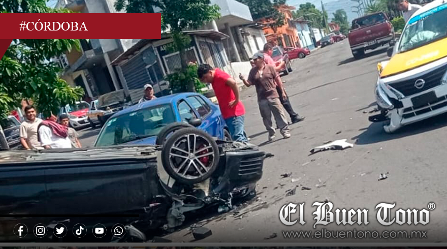 Córdoba, Ver.- Cuatro estudiantes del Cobaev 12 provocaron una carambola la tarde de este martes en el bulevar Agustín Millán, a la altura del parque DIF, luego de conducir a exceso de velocidad. El vehículo en el que viajaban chocó contra dos autos particulares y una motocicleta, terminando volcado sobre la vialidad.