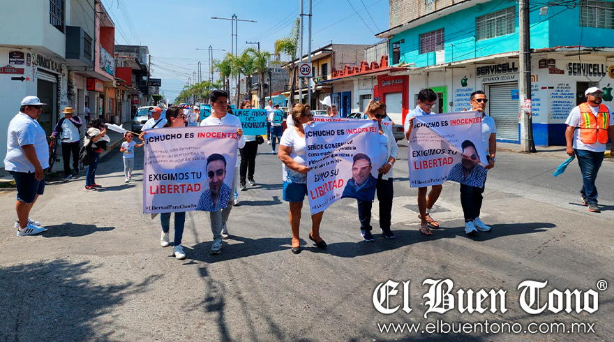 cd. Mendoza.- Una marcha pacífica realizaron amigos y familiares del detenido Jesús “N” con la finalidad de pedirle al gobernador del estado, Cuitláhuac García Jiménez, que libere al empresario restaurantero y político, ya que los ahí presentes aseguran el hombre es inocente de los cargos que le imputan.